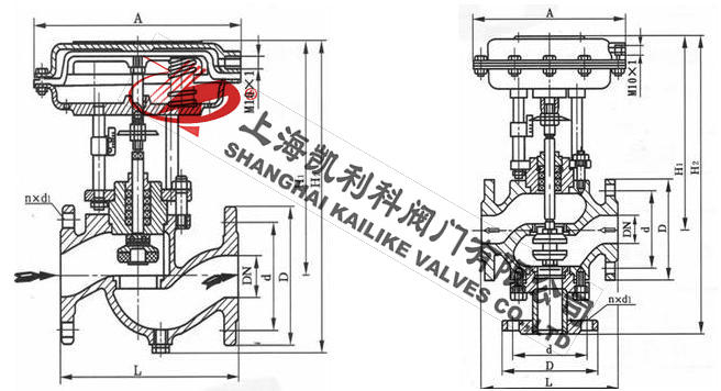 (1)氣動薄膜切斷閥采用多彈簧執行機構與調節機構用三根立相連,整個高度可減小約30%,重量可減輕約30%。