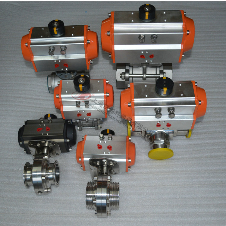 采用新型GT系列或AT系列氣動執行器,有雙作用式和單作用式(彈簧復位),齒輪傳動,安全可靠;大口徑閥門采用AW型系列氣動執行器拔叉式傳動,結構合理,輸出扭矩大,有雙作用式和單作用式。