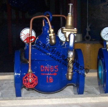 900X緊急關(guān)閉閥當(dāng)出口壓力低于導(dǎo)閥設(shè)定的壓力時(shí),導(dǎo)閥此時(shí)處于開通狀態(tài),主閥上腔壓力與主閥出口壓力相等,進(jìn)口與吃口存在壓差,水流經(jīng)閥口出口流出,當(dāng)消防泵氣泵時(shí),或變平泵壓力升高時(shí),超過導(dǎo)閥設(shè)定壓力,由主閥進(jìn)口向?qū)чy管控制室壓力升高,作用在彈簧壓力增大,向下壓緊,帶動(dòng)閥芯下移,使導(dǎo)閥關(guān)閉,此時(shí)主閥進(jìn)口壓力通過節(jié)流閥補(bǔ)充到主閥閥蓋上腔,因閥瓣受到向下壓力大于向上推力,主閥關(guān)閉。值得注意的是,進(jìn)口壓力小于設(shè)定壓力是,主閥處于開啟狀態(tài),進(jìn)口壓力大于設(shè)定壓力,閥瓣關(guān)閉。